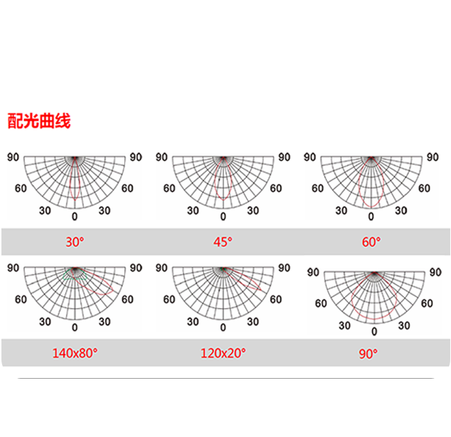 | 光束角 | 30°/45°/60°/90°/140X80°/120X20° | |||||