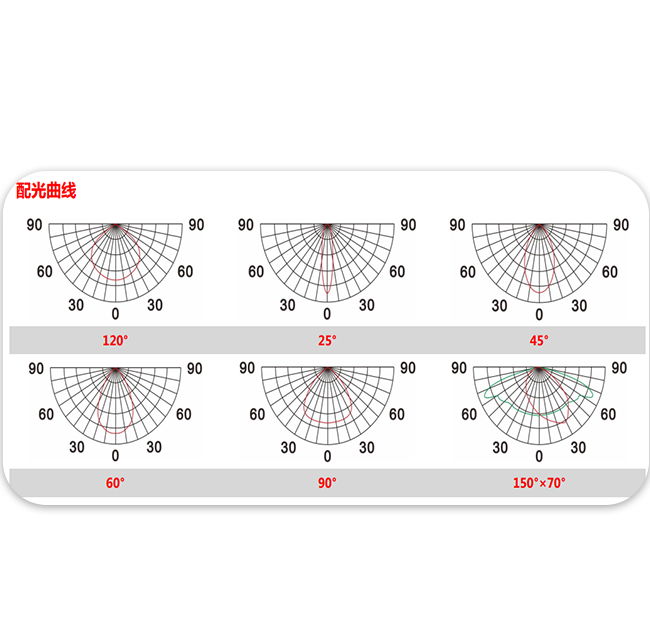 | 光束角 | 10°/20°/40°/60°/90°/95°x25° | ||